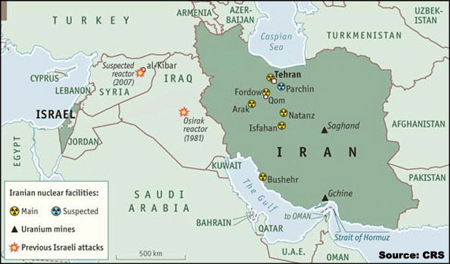 Possible Military Strike Against Iran’s Nuclear Facilities,’ includes the above map.