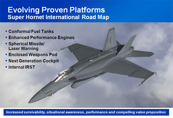 Boeing officials showed a concept drawing (above) of a new Super Hornet